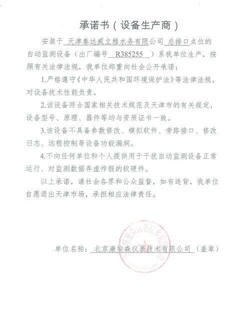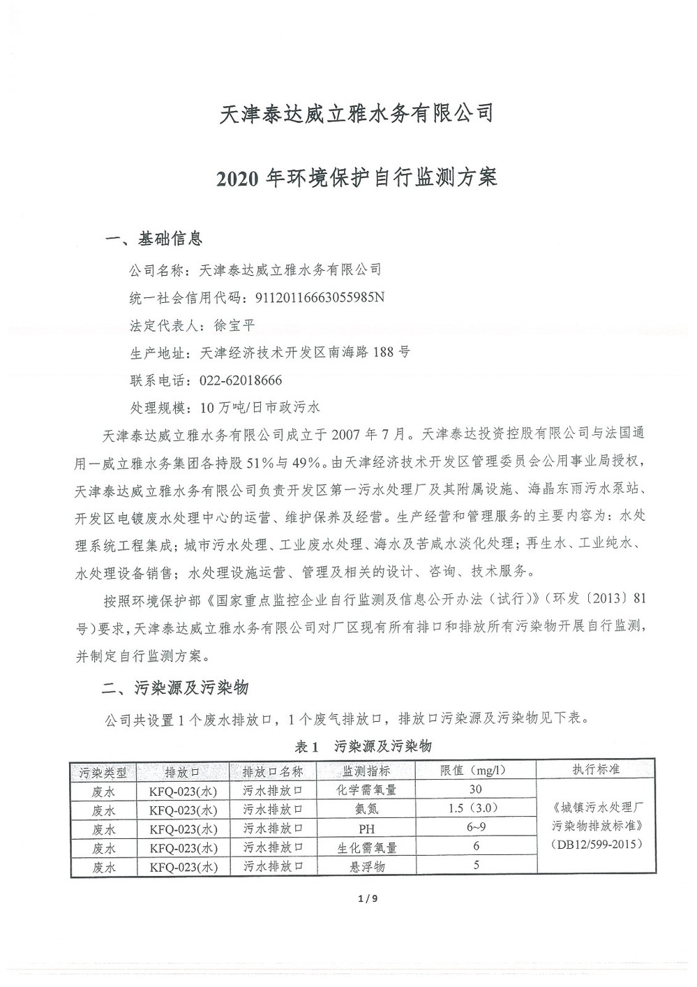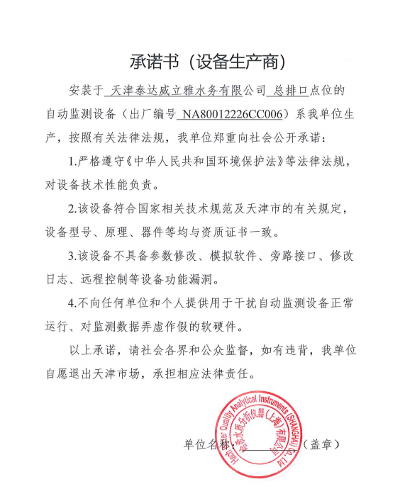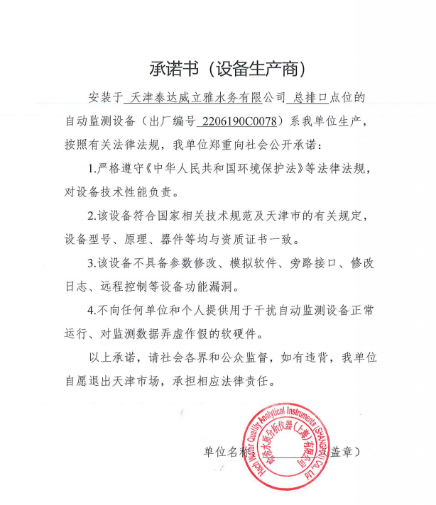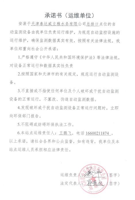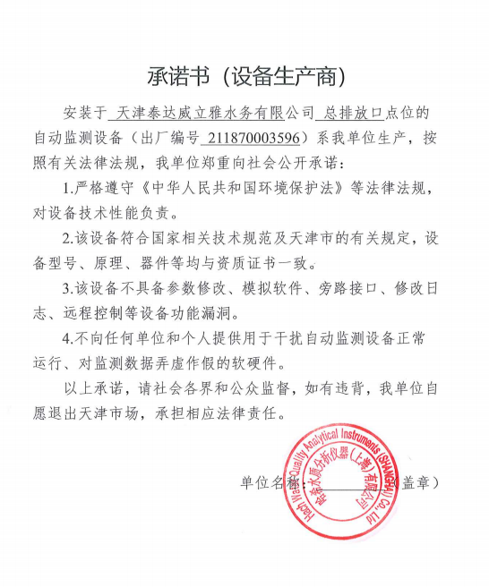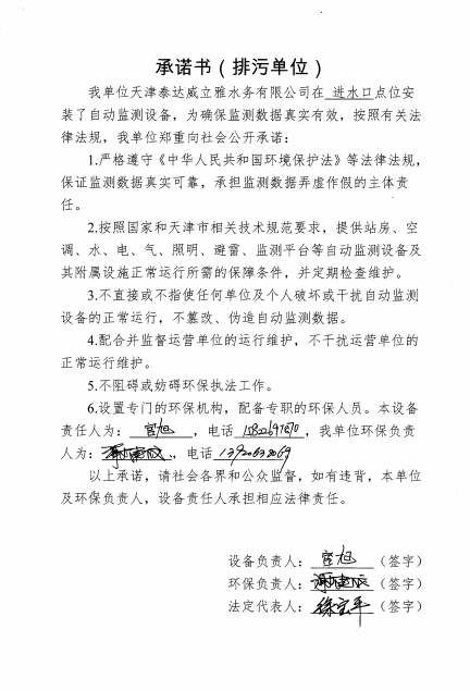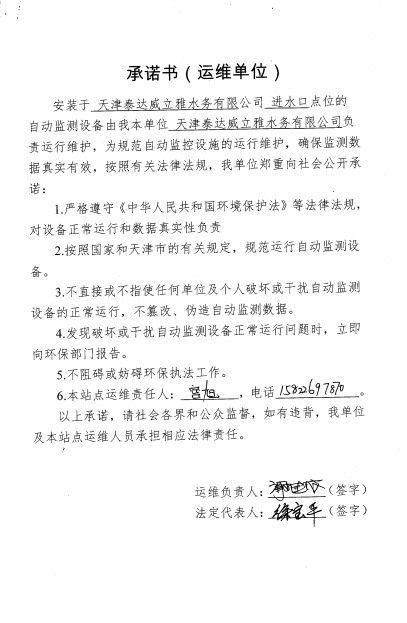 ? 公司出水指標(biāo)數(shù)據(jù)經(jīng)現(xiàn)場數(shù)據(jù)采集儀采集后直接上傳至天津開發(fā)區(qū)環(huán)保局及天津市環(huán)境監(jiān)測中心。天津市環(huán)境監(jiān)測中心直接將接收自公司的上傳數(shù)據(jù)發(fā)送至國家環(huán)保部。實現(xiàn)了對我公司出水指標(biāo)數(shù)據(jù)的實時在線監(jiān)控和監(jiān)督管理。 自2014年,依《國家重點監(jiān)控企業(yè)污染源監(jiān)督性監(jiān)測及信息公開辦法(試行)》,主要污染物排放情況經(jīng)天津市重點企業(yè)自行檢測數(shù)據(jù)發(fā)布系統(tǒng)對外公布,主動接受社會公眾監(jiān)督。 信息發(fā)布平臺 2025年第4季度環(huán)境信息公開:天津泰達(dá)威立雅水務(wù)有限公司 公司名稱:天津泰達(dá)威立雅水務(wù)有限公司 統(tǒng)一社會信用代碼:91120116663055985N 法定代表人:徐寶平 生產(chǎn)地址:天津經(jīng)濟(jì)技術(shù)開發(fā)區(qū)南海路188號 聯(lián)系電話:022-62018666 處理規(guī)模:10萬m3/日市政污水 生產(chǎn)經(jīng)營和管理服務(wù)的主要內(nèi)容: 水處理系統(tǒng)工程集成;城市污水處理、工業(yè)廢水處理、海水及苦咸水淡化處理;再生水、工業(yè)純水、水處理設(shè)備銷售;水處理設(shè)施運(yùn)營、管理及相關(guān)的設(shè)計、咨詢、技術(shù)服務(wù)。 其他信息: 天津泰達(dá)威立雅水務(wù)有限公司成立于2007年7月。天津泰達(dá)投資控股有限公司與法國通用-威立雅水務(wù)集團(tuán)各持股51%與49%。由天津經(jīng)濟(jì)技術(shù)開發(fā)區(qū)管理委員會公用事業(yè)局授權(quán),天津泰達(dá)威立雅水務(wù)有限公司負(fù)責(zé)開發(fā)區(qū)第一污水處理廠及其附屬設(shè)施、海晶東雨污水泵站、開發(fā)區(qū)電鍍廢水處理中心的運(yùn)營、維護(hù)保養(yǎng)及經(jīng)營。 項目(出水) 平均值(mg/L) A標(biāo)準(zhǔn)(DB12/599-2015) (mg/L) 化驗次數(shù)(次) 合格率(%) 我公司排放口數(shù)量為一個,位于廠區(qū)東南側(cè)。處理后出水排入市政專用排污管道,經(jīng)北排泵站排入渤海灣。2025年10-12月我公司COD、氨氮、總氮、總磷排放總量如下: 146.53 天津泰達(dá)威立雅水務(wù)有限公司為原天津經(jīng)濟(jì)技術(shù)開發(fā)區(qū)污水處理廠,是天津濱海新區(qū)第一座污水處理廠,位于開發(fā)區(qū)南海路與第十二大街交口處,污水處理項目投資總額3.5534億元人民幣,占地8.1公頃,設(shè)計能力為日處理污水10萬m3,其中市政污水的比例高于60%。污水處理工藝目前采用“預(yù)處理+SBR+反硝化濾池+臭氧催化高級氧化+紫外消毒”。脫水機(jī)房、進(jìn)水泵房、預(yù)處理單元和儲泥池的臭氣經(jīng)過收集管道收集進(jìn)入生物過濾塔除臭處理。剩余污泥經(jīng)脫水機(jī)脫水處理,泥餅外運(yùn)處理。工藝系統(tǒng)由在線儀器儀表輸送到中控室實現(xiàn)自動控制。 出水水質(zhì)達(dá)到天津市《城鎮(zhèn)污水處理廠污染物排放標(biāo)準(zhǔn)》(DB12/599-2015)A排放標(biāo)準(zhǔn)。廠界噪聲均滿足《工業(yè)企業(yè)廠界噪聲標(biāo)準(zhǔn)》GB12348-2008(3類)晝、夜標(biāo)準(zhǔn)值。廠界無組織排放廢氣中臭氣濃度、氨、硫化氫濃度均符合《惡臭污染物排放標(biāo)準(zhǔn)》(GB12/059-2018)限值要求。 開發(fā)區(qū)第一污水處理廠現(xiàn)狀主要的大氣影響來自預(yù)處理單元(格柵與沉砂池)和污泥區(qū)(污泥脫水機(jī)房)的惡臭氣體。污泥脫水機(jī)房、污泥料倉、三合一泵房等設(shè)施產(chǎn)生的臭氣集中收集,儲泥池、預(yù)處理單元等采用加罩密閉設(shè)計,臭氣集中收集至生物除臭裝置,除臭效率不低于80%,處理后由15米高排氣筒達(dá)標(biāo)排放。根據(jù)天津市環(huán)保局《關(guān)于天津開發(fā)區(qū)第一污水處理廠改造工程環(huán)境影響報告書的批復(fù)》,開發(fā)區(qū)第一污水處理廠的衛(wèi)生防護(hù)距離設(shè)為100m。 污水廠廢氣監(jiān)測結(jié)果表明,廠區(qū)周界監(jiān)測點位臭氣濃度均低于20(無量綱),符合《惡臭污染物排放標(biāo)準(zhǔn)(GB12/059-2018)的標(biāo)準(zhǔn)要求。 開發(fā)區(qū)第一污水處理廠污水經(jīng)處理后達(dá)到天津市《城鎮(zhèn)污水處理廠污染物排放標(biāo)準(zhǔn)》(DB12/599-2015)A排放標(biāo)準(zhǔn)要求。污水處理廠工藝過程本身沒有生產(chǎn)性廢水排放,所排污水主要為生活污水和污泥處理水,這部分廢水一同返回本污水處理廠的進(jìn)水泵房,與市政污水一并處理。2025年10-12月出水達(dá)標(biāo)率為100%,無超標(biāo)情況。 開發(fā)區(qū)第一污水處理廠主要的噪聲設(shè)備為鼓風(fēng)機(jī),鼓風(fēng)機(jī)位于鼓風(fēng)機(jī)房,并設(shè)置隔音減震措施,其噪聲影響甚微。 監(jiān)測結(jié)果:廠界噪聲共設(shè)置4個噪聲監(jiān)測點,執(zhí)行《工業(yè)企業(yè)廠界環(huán)境噪聲排放標(biāo)準(zhǔn)》(GB12348-2008)3類標(biāo)準(zhǔn),根據(jù)監(jiān)測結(jié)果,各廠界處噪聲均符合執(zhí)行標(biāo)準(zhǔn)要求。 污水廠運(yùn)行過程中產(chǎn)生的固體廢棄物主要為柵渣、沉砂、污泥及生活垃圾。生活垃圾和柵渣交由開發(fā)區(qū)環(huán)衛(wèi)綜合服務(wù)公司清運(yùn)處理;產(chǎn)生的脫水污泥委托天津恒基環(huán)境工程有限公司和天津萬德生物工程有限公司進(jì