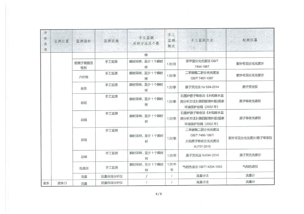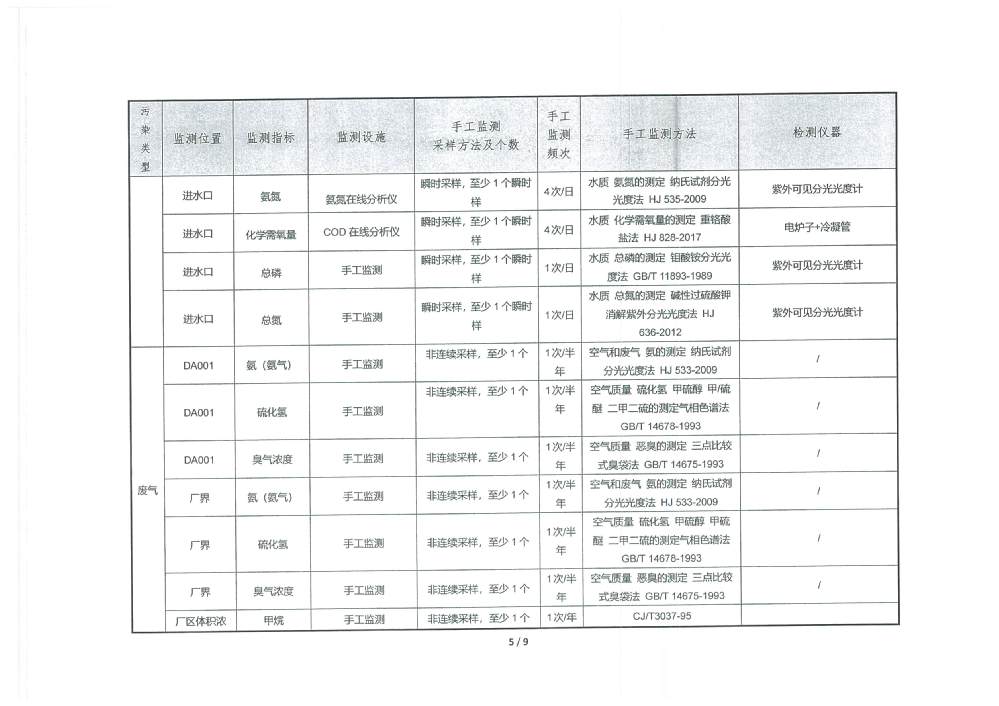 PH 6.54 6-9 92 100 COD 19.27 30 92 100 BOD5 2.31 6 92 100 SS 2.57 5 92 100 TP 0.15 0.3 92 100 TN 5.99 10 92 100 NH4-N 0.41 1.5(3.0) 92 100 色度 2.00 15 92 100 糞大腸菌群 51.87 1000 92 100 石油類 0.03 0.5 3 100 動植物油 0.05 1.0 3 100 陰離子表面活性劑 0.160 0.3 3 100 六價鉻 0.002 0.05 1 100 總鉻 0.015 0.1 1 100 總鎘 0.00014 0.005 1 100 總砷 0.0008 0.05 1 100 總鉛 0.0004 0.05 1 100 總汞 0.00037 0.001 1 100 出水達(dá)標(biāo)率100% 2025年4季度 排放量(噸) 1 化學(xué)需氧量 2 氨氮(NH3-N) 3.12 3 總氮(以N計) 45.55 4 總磷(以P計) 1.14 3.防治污染設(shè)施的建設(shè)和運(yùn)行情況