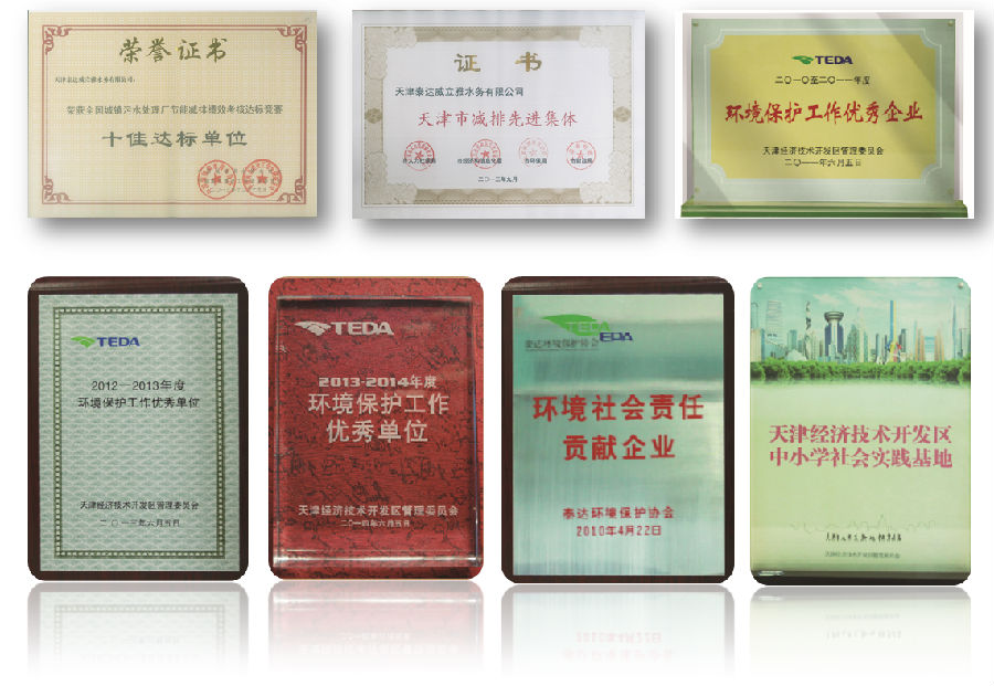 公司自成立以來,蒞年榮獲由中國(guó)城鎮(zhèn)供水排水協(xié)會(huì)、泰達(dá)環(huán)境保護(hù)協(xié)會(huì)、開發(fā)區(qū)管委會(huì)、泰達(dá)控股有限公司等機(jī)構(gòu)頒發(fā)的各類先進(jìn)榮譽(yù)共20余項(xiàng),得到了天津市和開發(fā)區(qū)環(huán)保局、開發(fā)區(qū)管委會(huì)及合作股東的認(rèn)可。
